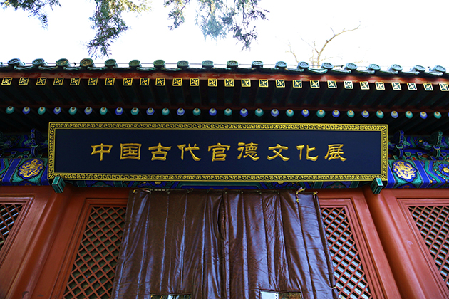 2008 年孔廟和國子監博物館對外開放,陸續推出“大哉孔子展”“金榜題名展”“國子監原狀陳列展”“孔廟歷史沿革展”等基本展陳。2014年3 月,在充分挖掘儒家官德思想內涵的基礎上,推出《為政以德—中國古代官德文化展》。展覽分為六個單元, 從中國古代官德思想、制度和實踐三方面,借助展板、實物、圖片和多媒體科技展項,生動展示了古代官德思想的起源、發展和演變,古代官員的選拔、管理和監察,以及古代官員的各種官德事跡。