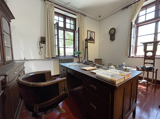 圖書館主任室即李大釗工作的辦公室,位于紅樓一層?xùn)|南角,分里外兩間,總面積約50 平方米。1918 年1 月,李大釗出任北京大學(xué)圖書館主任,8 月,北大紅樓建成后,李大釗組織北大圖書館由藏書樓搬遷至北大紅樓,直至1922 年12 月,李大釗任職圖書館主任時均在此工作。