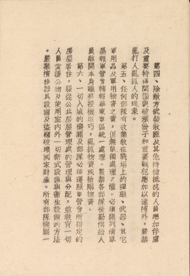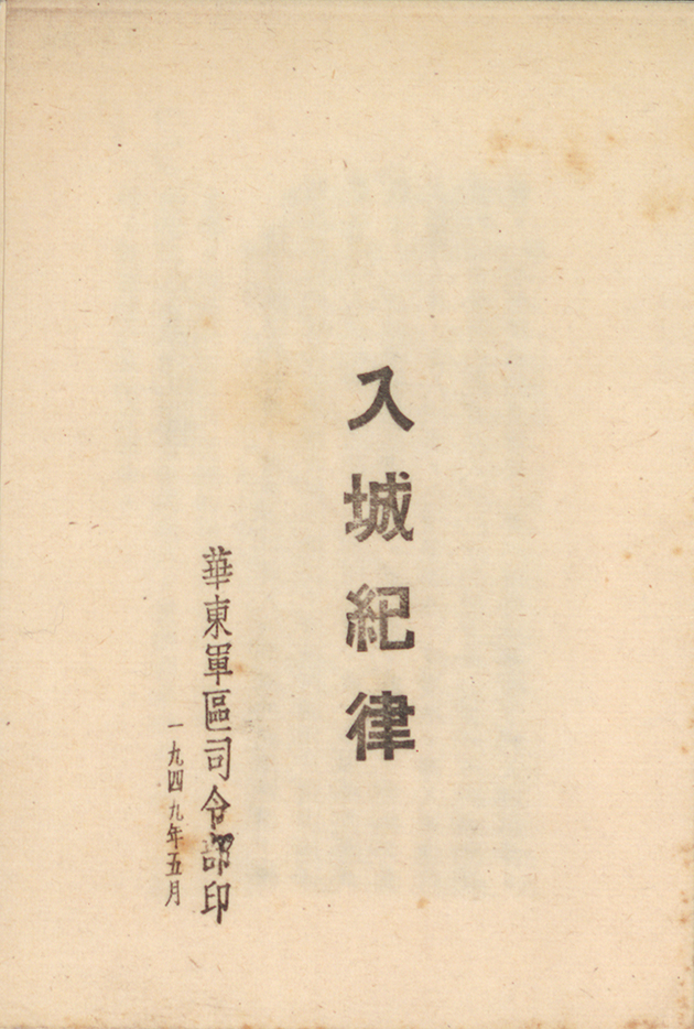 香山革命紀念館基本陳列里展示了一本1949 年5 月華東軍區司令部印制的《入城紀律》,這本小冊子長9.5 厘米、寬13.2 厘米,里面特別強調了解放上海時人民解放軍嚴禁亂打人亂抓人,嚴禁亂抓物資或搶購物資等重要紀律要求。