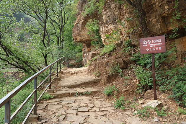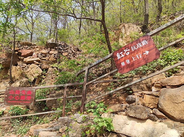 紅色抗戰(zhàn)小路總長(zhǎng)約900 米,是抗戰(zhàn)時(shí)期黨、政、軍領(lǐng)導(dǎo)、八路軍戰(zhàn)士及村民上山的唯一道路。參觀者可在小路上體驗(yàn)用扁擔(dān)挑運(yùn)物資、用背簍背物資等活動(dòng),充分感受抗日戰(zhàn)爭(zhēng)的艱苦卓絕。