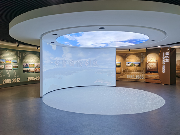 展覽館面積3000 平方米,一層展廳1300 平方米,以水庫建設發展為主線,通過老照片、場景還原、多媒體互動、聲光電配合等多種手段,講述密云水庫的前世今生,展示密云人民建設和守護密云水庫的奮斗華章,為守護綠水青山作出的貢獻與努力,向水庫的建設者和守護者致敬,弘揚不忘初心接續奮斗、不畏艱險戰天斗地、勤儉節約開拓創新、講政治顧大局無私奉獻、遵紀律守規矩聽指揮、干部群眾同吃同住同勞動等“密云水庫精神”。二層另設臨時展覽空間,總面積335 平方米,用以舉辦各種類型的文化展覽,開展主題學習、廉政教育活動等。