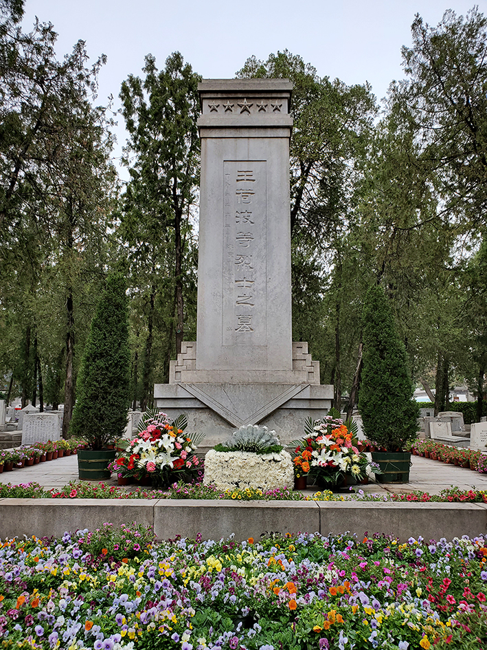 周恩來與王荷波曾長期并肩開展革命斗爭,共同領導過上海工人武裝起義,結下了深厚的革命友誼。新中國成立后不久,周恩來在指示修建八寶山革命公墓的同時,指示北京市組織力量找到了王荷波及一同犧牲烈士的遺骨。1949 年12 月11 日,在八寶山革命公墓舉行了王荷波等烈士的移葬典禮,周恩來主祭。1955 年3 月,北京市民政局為王荷波等烈士墓修建了一座高大的紀念碑,在碑的正面刻有“王荷波等烈士之墓”八個大字,字的上方是五個五角星,墓碑前的平地上用彩色的鵝卵石砌成“永垂不朽”四個大字。